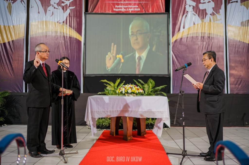 Acara pelantikan yang digelar di Auditorium Koinonia Universitas Kristen Duta Wacana (UKDW) ini dihadiri sejumlah tamu undangan. Di antaranya perwakilan LLDIKTI (Lembaga Layanan Pendidikan Tinggi (LL Dikti) Wilayah V, para pemangku kepentingan bidang pendidikan, serta seluruh sivitas akademika UKDW.