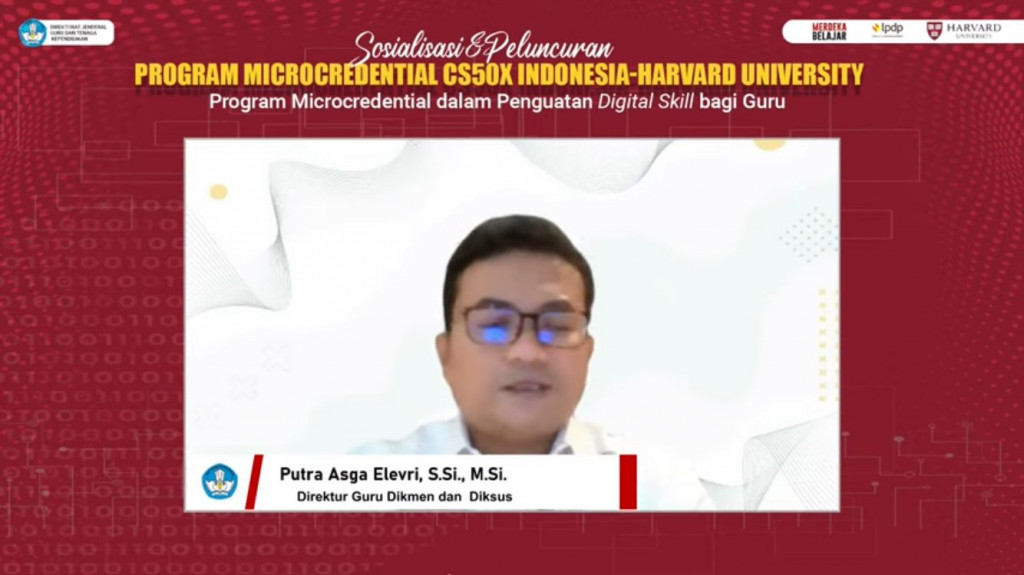 "Ini merupakan program kerja sama antara Kemdikbudristek dengan Harvard University dengan dukungan LPDP dalam pemberdayaan digital skill bagi guru untuk mengikuti kelas daring CS50 dari Harvard University," kata Direktur Guru Pendidikan Menengah dan Pendidikan Khusus, Putra Asga Elevri, dalam peluncuran secara daring, Selasa, 22 Agustus 2023.