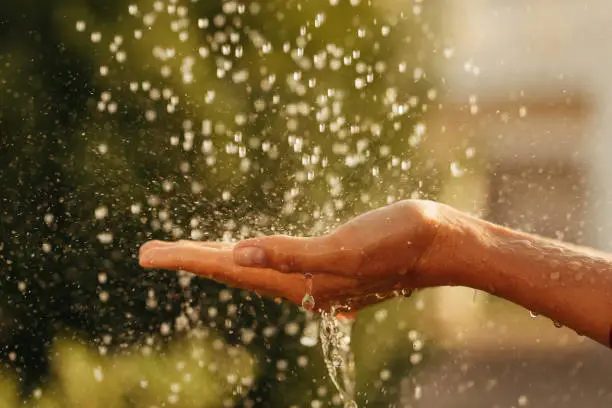 Air yang dipercikkan juga mesti lebih banyak dari air kencing yang mengenai tempat tersebut. Setelah itu barulah diperas atau dikeringkan. Dalam hal ini tidak disyaratkan air yang dipakai untuk menyucikan harus mengalir.