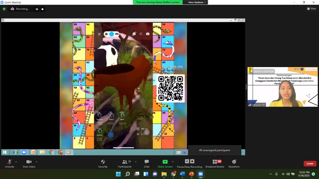 Salwa Rafilia, mahasiswa pembuat purwarupa Aplikasi Bonding menjelaskan, aplikasi ini memberikan fitur edukasi, yaitu informasi tentang cara mengantisipasi gangguan mental pada anak tuna rungu.