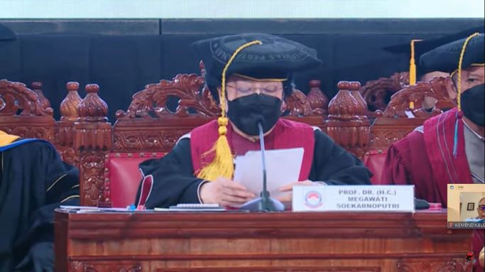 Hal ini disampaikan Megawati dalam orasi ilmiah pengukuhan dirinya sebagai Profesor Kehormatan atau Guru Besar Tidak Tetap Universitas Pertahanan (Unhan), Jumat, 11 Juni 2021.