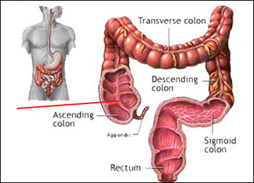Bagian pertama adalah sekum yang berbentuk seperti kantong yang menghubungkan bagian akhir usus kecil (ileum) dengan usus besar. Fungsi sekum untuk menyerap kembali nutrisi dan sisa air dari chyme.2. Kolon