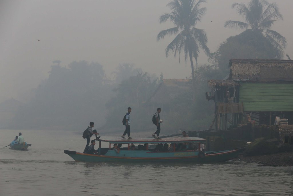 Siswa di Palembang libur sekolah karena asap. Foto: MI/Ramdani. ()