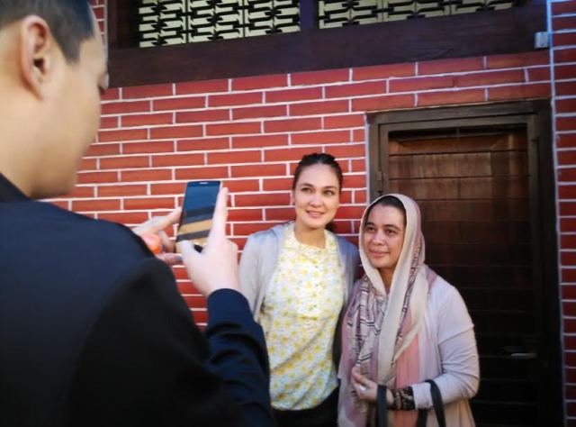 Artis Ibu Kota Luna Maya diajak foto bersama oleh warga yang mendatangi Rumah Lembang, posko pemenangan Ahok-Djarot di Menteng, Jakarta Pusat. Foto: MTVN/LB. Ciputri Hutabarat.
