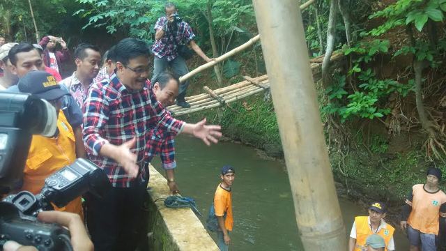 Calon petahana wakil Gubernur DKI Jakarta Djarot Saiful Hidayat saat blusukan ke RW 03 Kelurahan Kalisari, Pasar Rebo, Jakarta Timur sambil meninjau kondisi sungai. Foto: MTVN/Intan Fauzi