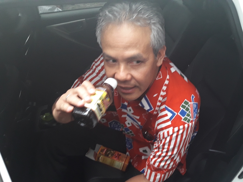 Calon Gubernur nomor urut 1 Jawa Tengah Ganjar Pranowo menunjukan ramuan rahasianya selama safari politik. Foto: Medcom.id/Budi Arista Romadhoni