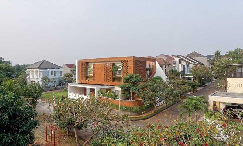Menonjolkan material tertentu di fasad bangunan bisa menjadikan rumah tampak berbeda. Seperti ekspos batu bata merah seperti hunian ini. Anda juga bisa memilih material lainnya seperti kayu atau beton.
