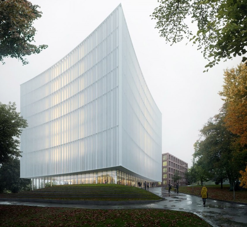 Bangunan ini akan memiliki delapan lantai yang menampung perpustakaan yang dibangun dari kayu. Selain menciptakan suasana belajar yang menenangkan, bahan tersebut dipilih untuk mengurangi karbon bangunan.
