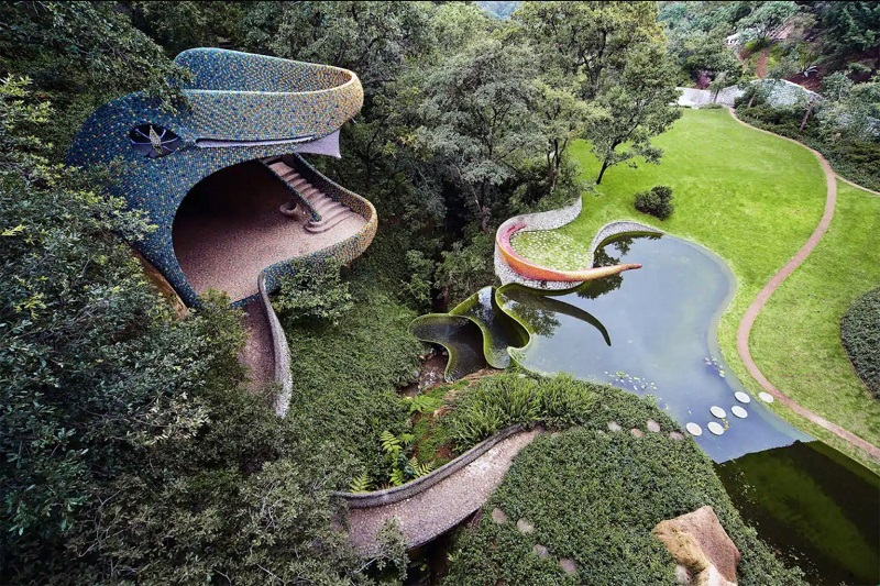 Dirancang oleh arsitek Javier Senosiain, hotel ini berbentuk ular berwarna-warni yang terinspirasi oleh dewa Aztec ular, Quetzalcóatl.