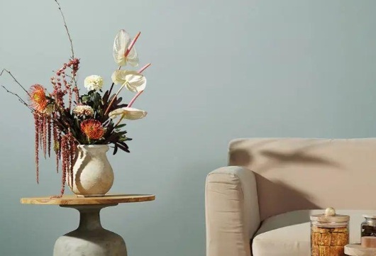 Pilihan warna lembut seperti Wild Ivy, Iconic, dan Cityscape dapat memberikan kesan tenang. Warna-warna ini dinilai sesuai untuk area beristirahat, membaca, atau beribadah.3. Ruang makan