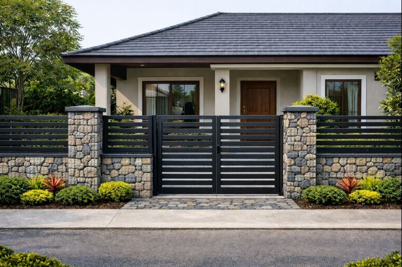 Pemilihan material dan kombinasi untuk pagar rumah menjadi salah satu aspek penting dalam memperkuat tampilan eksterior hunian. Tak hanya berfungsi sebagai pembatas dan pengaman, pagar kini juga berperan sebagai elemen estetika yang mampu meningkatkan karakter rumah secara keseluruhan.Salah satu desain pagar yang kian digemari adalah kombinasi batu alam dan besi. Perpaduan ini mampu menciptakan visual yang elegan sekaligus kokoh. Batu alam memberikan kesan natural, unik, dan tahan lama, sementara material besi baik dalam bentuk teralis maupun rangka memberikan kekuatan struktural pada pagar.