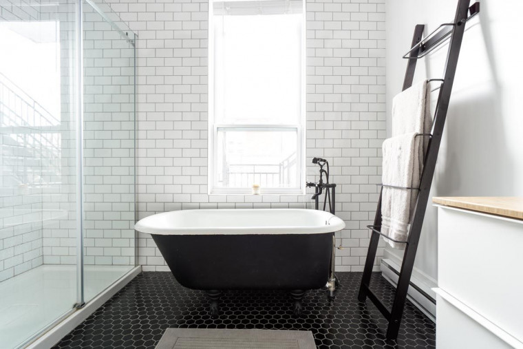 Desain adalah pertimbangan utama Anda. Semua ubin memiliki nat, dan nat berarti garis. Garis menciptakan pola yang dapat meningkatkan atau mengurangi penampilan kamar mandi.