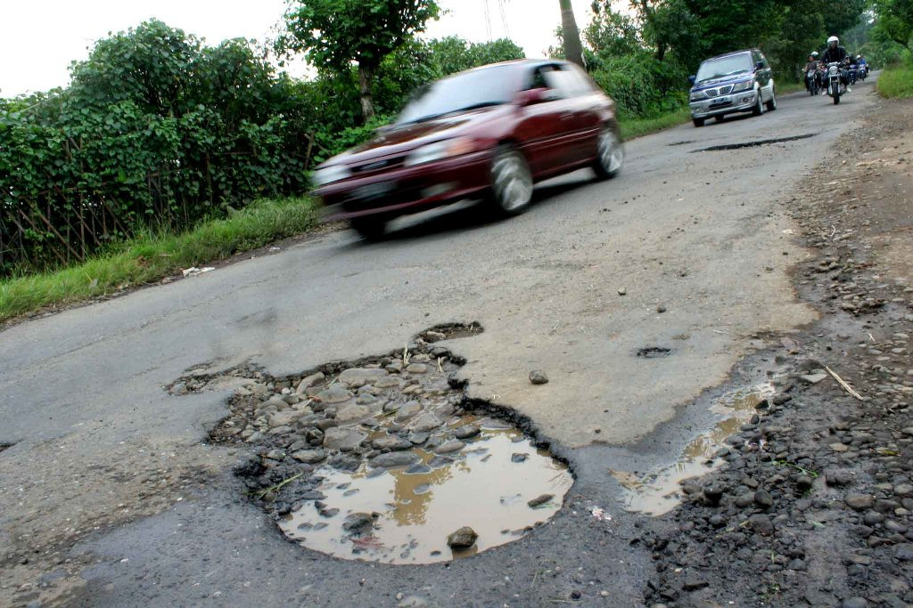 Jalur Banyumas-Purbalingga yang rusak/MI/Liliek Dharmawan.