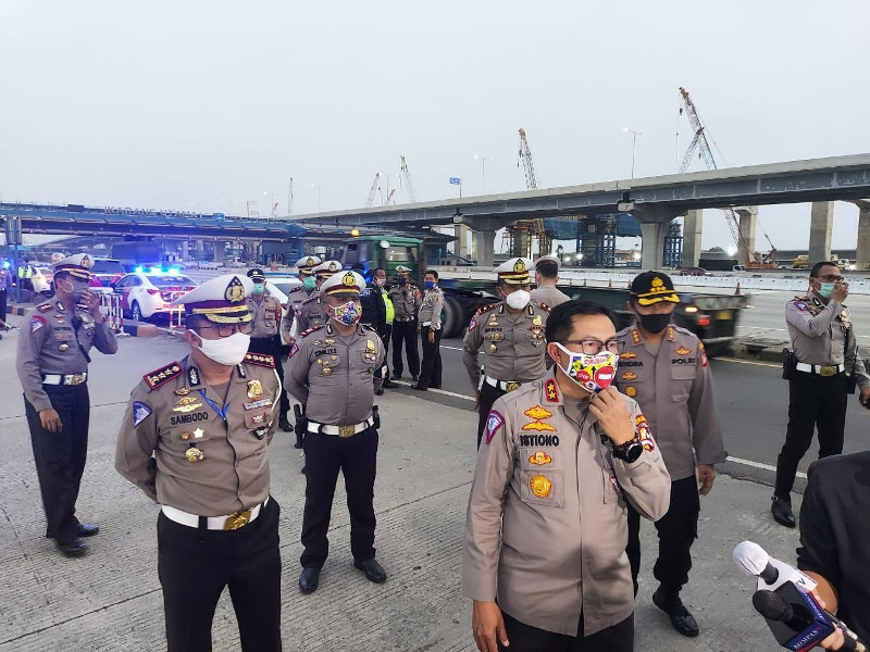 Kakorlantas Polri Irjen Istiono dan Dirlantas Polda Metro Jaya Kombes Sambodo saat meninjau Check Point di Cikarang. Istimewa
