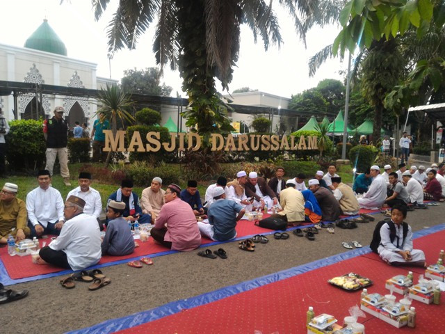 Jakarta: Yayasan Masjid Darussalam Kota Wisata menggelar buka bersama dalam Ifthor on the Road Darussalam 2018. Acara ini sekaligus solidaritas bagi umat muslim di Palestina.