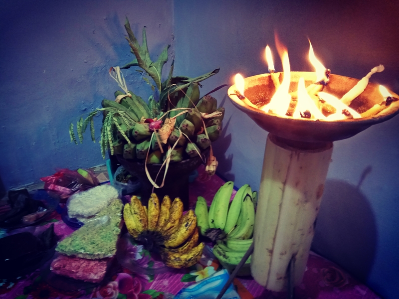 Sebelum dibagikan ke tetangga, ada doa doa yang diantarkan. Doa atau istilah lain wujudan, dilakukan oleh tokoh spiritual setempat.