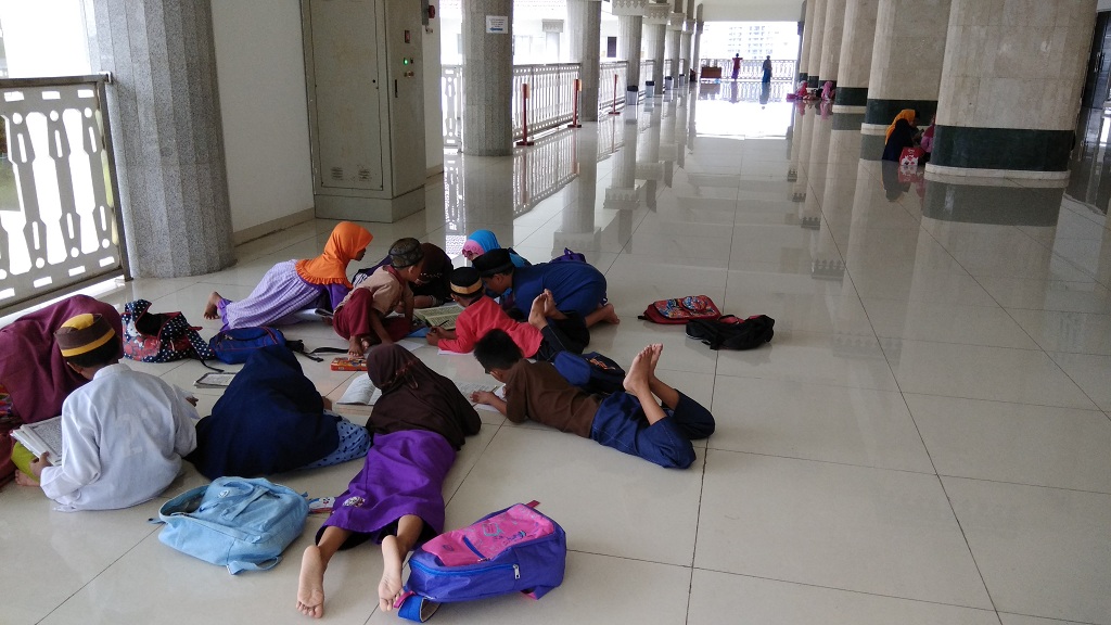 Saat Medcom.id berkunjunga, peserta pesantren kilat jenjang SD tengah mengikuti kegiatan membaca Iqra dan Alquran didampingi beberapa mentor dari remaja masjid. Mereka melakukan kegiatan di sayap kiri lantai dua.