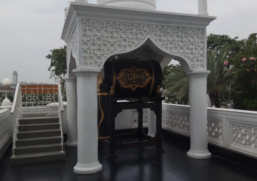 Panjang alat tabuh itu 1,5 meter dengan diameter 1 meter. Badan beduk penuh ukiran lafadz 'hayya ala shalah', salah satu lafadz dalam adzan.