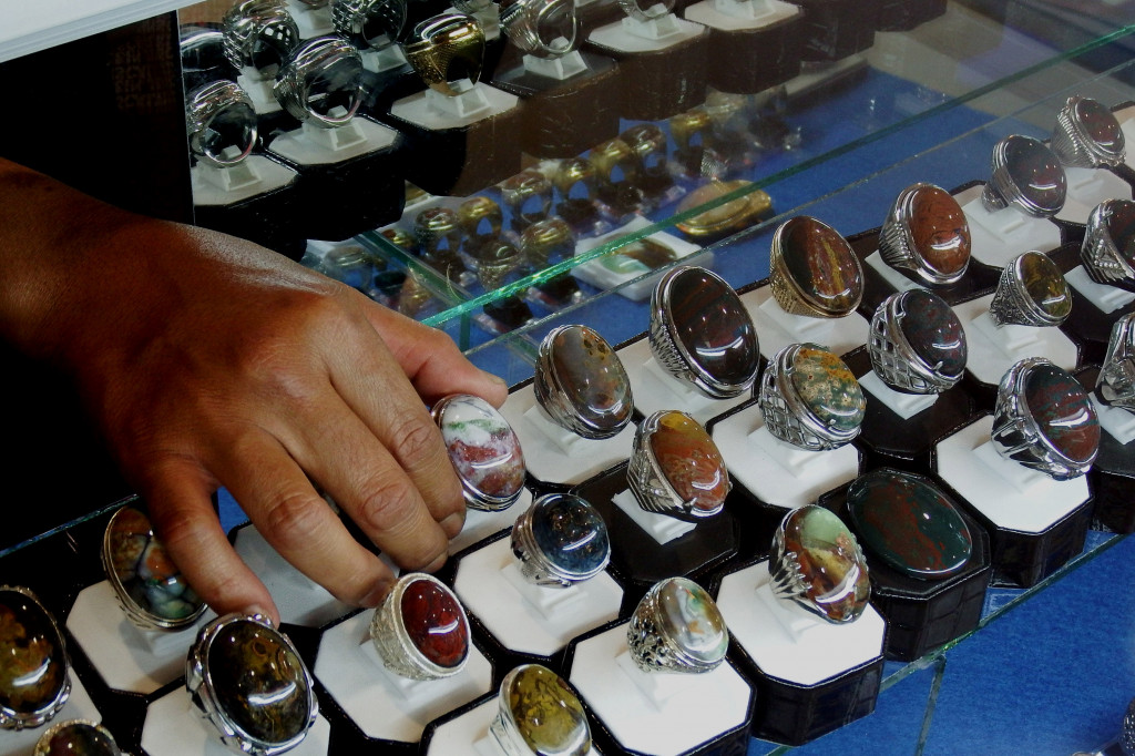 Koleksi batu-batu cincin yang tersimpan dalam lemari itu milik Muhammad Yamin Pahlevi.