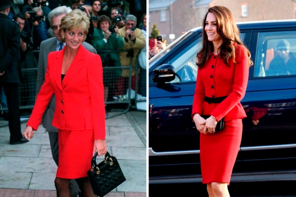 Kedua wanita anggun ini seakan mengenakan baju yang sama, padahal Putri Diana mengenakan busana pink ini saat ada di acara the Abbeyfield Society annual general meeting tahun 1990, dan Kate mengenakan baju pink coat ini saat mengunjungi the Stephen Lawrence Center pada 2015.