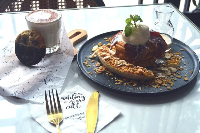 Untuk dessert dari Alfred, salah satu yang unik dari kafe ini adalah pancake yang berbeda dari pancake kebanyakan. Pancake yang disajikan di tempat ini lebih fluffy dibandingkan pancake kebanyakan yang cenderung padat.
