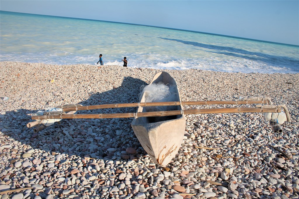Nelayan menggunakan sampan kayu yang melaut dan mengarungi ombak Pantai Kolbano. (Foto: Arthurio Oktavianus/Medcom.id)