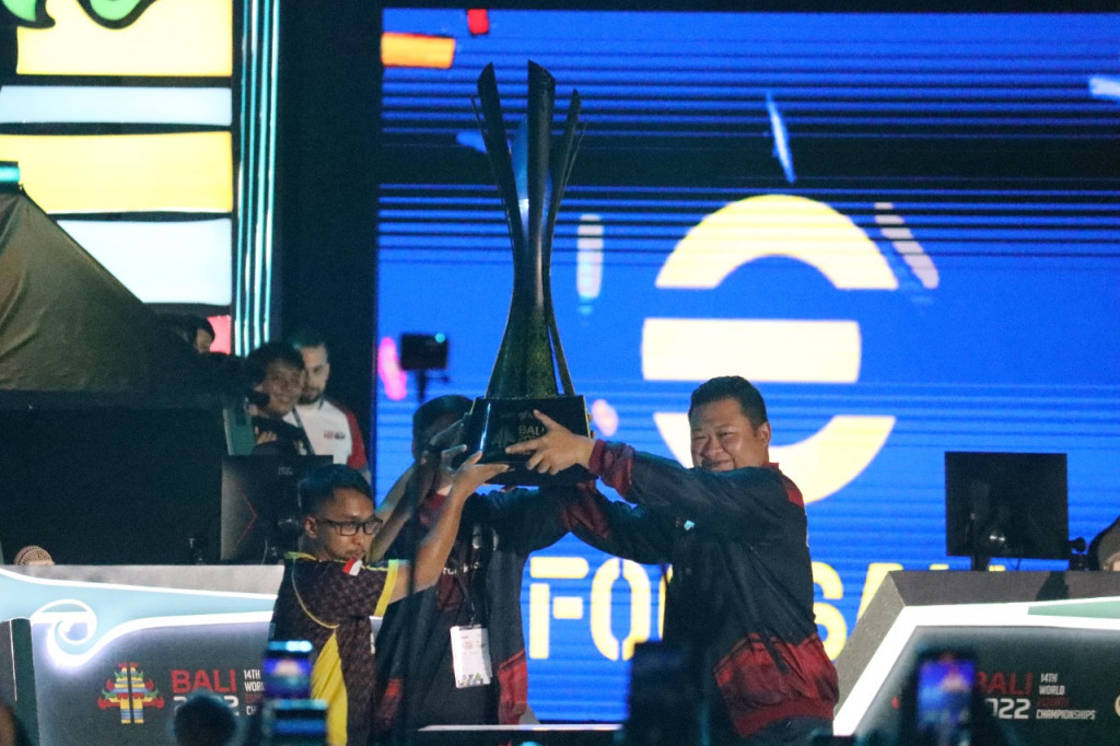 “Semoga prestasi luar biasa yang ditorehkan Tim DOTA 2 dan eFootball menjadi penyemangat bagi Tim Mobile Legends: Bang Bang yang besok di laga pamungkas akan berebut gelar juara dunia melawan Filipina. Mohon doanya dari seluruh masyarakat Indonesia,” tandasnya.