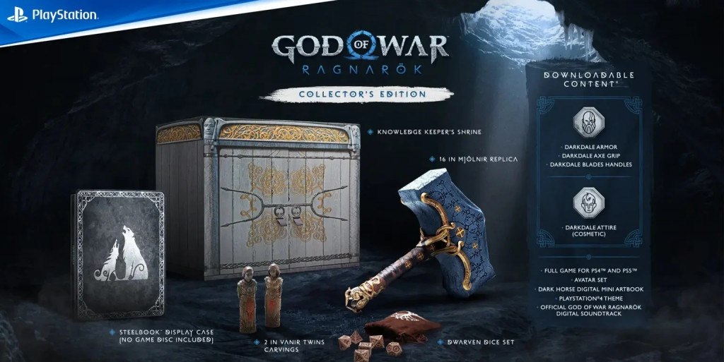 Selain Mjolnir, pada pake penjualan God of War: Ragnarok Collector's Edition terdapat satu set dadu Dwarven yang dibungkus dengan pouch berornamen. Kemudian ada sepasang pahatan kayu berukuran mungil.