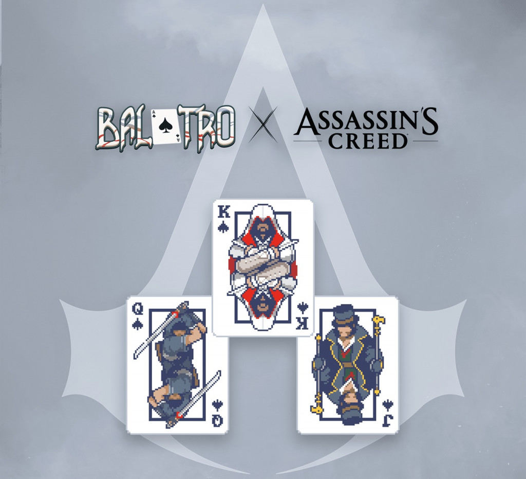 Balatro telah dikenal sebagai game poker roguelike yang menawarkan strategi mendalam serta kombinasi kartu yang unik. Dengan tambahan karakter dari Assassin’s Creed, pemain dapat menikmati permainan dengan nuansa stealth dan strategi yang khas dari seri Assassin’s Creed.Setiap kartu spesial ini memiliki desain eksklusif yang menampilkan karakter dengan gaya artistik khas Assassin’s Creed, yang semakin memperkaya pengalaman bermain. Kolaborasi ini menjadi salah satu dari sekian banyak langkah Ubisoft dalam membawa waralaba Assassin’s Creed ke berbagai platform dan genre yang berbeda.