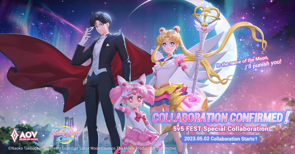 Pada kolaborasi ini AoV sendiri akan menwarkan tiga krakter utama yakni Eternal Sailor Moon (Usagi), Eternal Sailor Chibi Moon (Chibiusa), dan Tuxedo Mask (Mamoru Chiba). Ketiga karakter tersebut dihadirkan sebagai tanda kolaborasi yang dilakukan oleh AoV bersama dengan Sailor Moon.