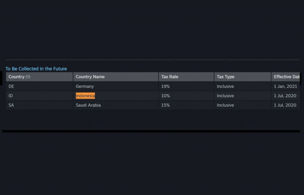 Jerman, Arab Saudi, dan Indonesia menjadi negara yang baru akan dikenakan pajak untuk setiap pembelian game. Sebelumnya sudah ada banyak negara yang dikenakan pajak.