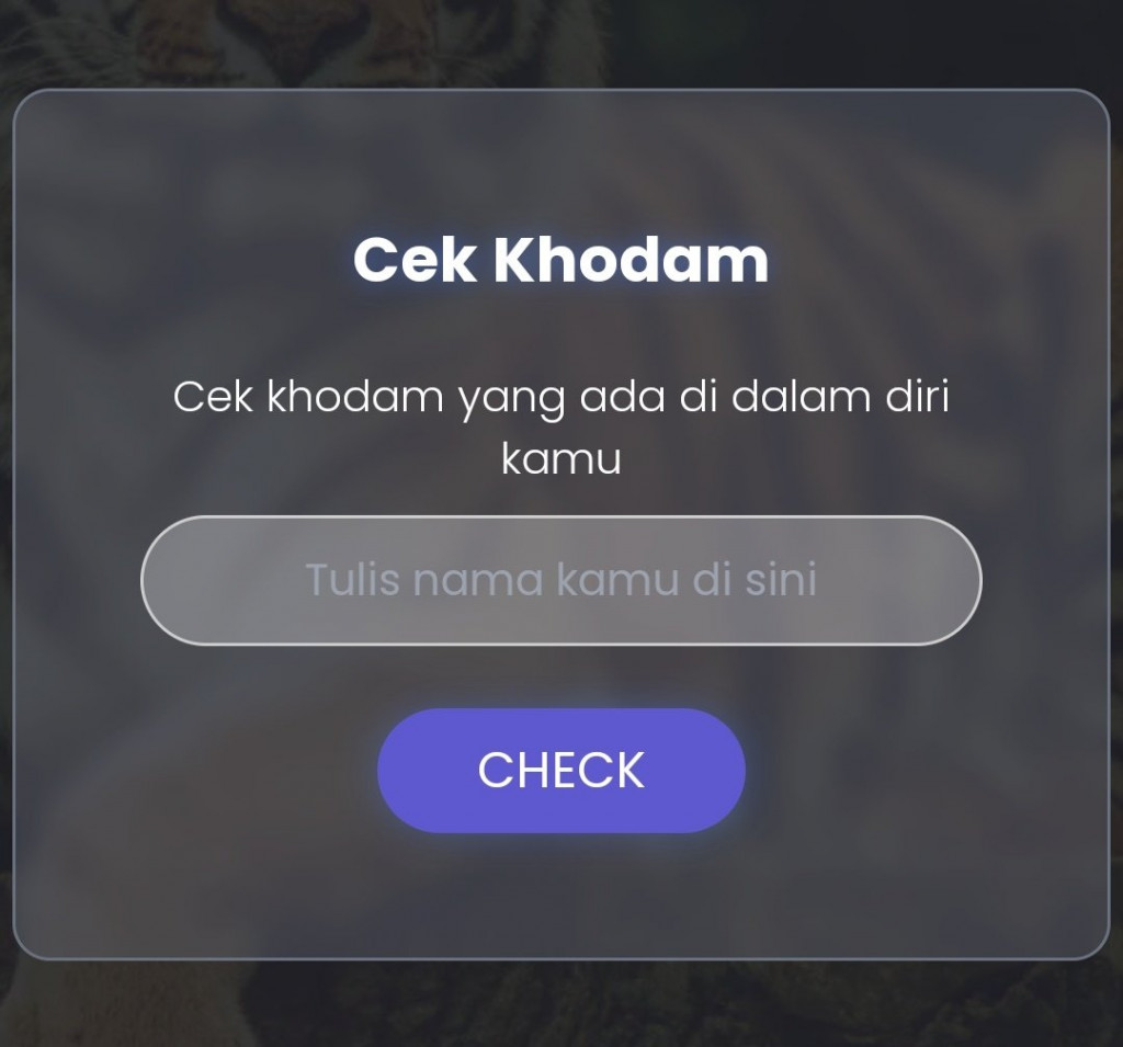 Nah di era modern ini yang serba teknologi, muncul sebuah game yang bisa memperlihatkan khodam seseorang. Game cek khodam tersebut bisa diakses di Vercel App dengan mengakses laman https://check-your-khodam.vercel.app/.Kemunculan game ini benar-benar ramai di TikTok. Para netizen kompak membagikan hasil cek khodam mereka. Adapun hasil cek khodam mereka kocak-kocak, mulai dari Helikopter, Bakwan Jagung, Toa Masjid hingga Cicak Dribble.