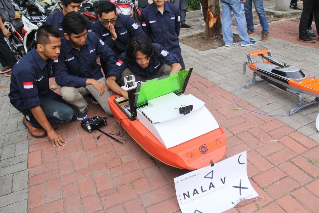 Nala V adalah kapal robot yang merupakan karya gabungan dari mahasiswa Jurusan Teknik Perkapalan, Teknik Sistem Perkapalan, Teknik Elektro, Teknik Industri, Teknik Informatika, serta Sistem Informasi. “Remote control memang didesain untuk kecepatan tinggi. Sedangkan kapalnya kita desain untuk komponen berat,” terang Rudy Dikairono ST MT, pembimbing tim Nala V.
