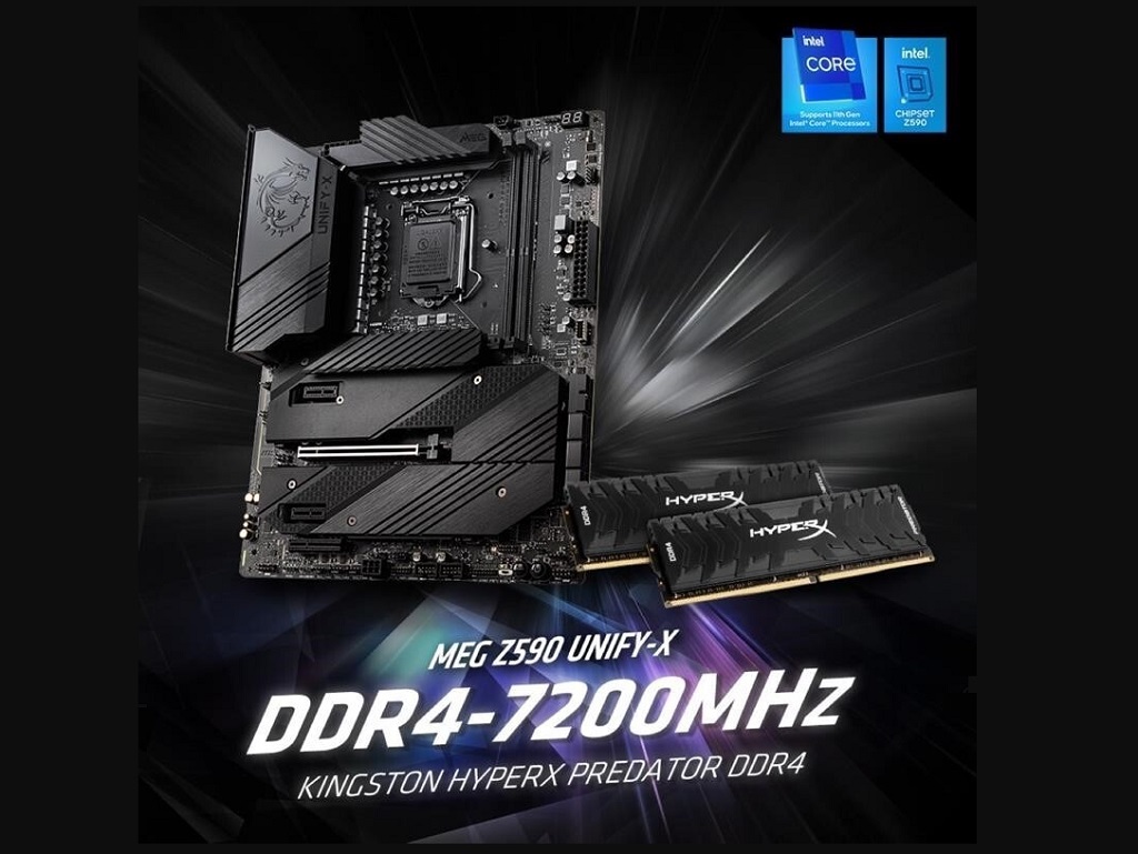 Di sini digunakan motherboard high-end dari MSI MEG Z590 Unify-X. Kingston menyediakan memori HyperX Predator DDR4 8G 4600MHz (HX446C19PB3K2/16). Menurut klaim Kingston produk mereka berhasil bertahan di overclocking dan mencatatkan rekor dunia untuk kategori overclocking DDR4.