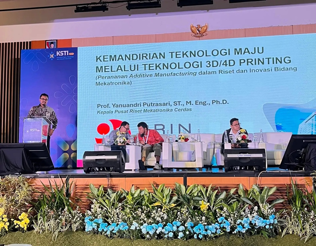 Yanuandri Putra, Kepala Pusat Riset Mekatronika Cerdas (PRMC), Badan Riset dan Inovasi Nasional (BRIN) merupakan salah satu narasumber dalam sesi ini. Dalam paparannya ia menyampaikan bahwa 3D/4D printing menjadi sorotan penting sebagai bagian dari upaya mendorong kemandirian teknologi nasional.