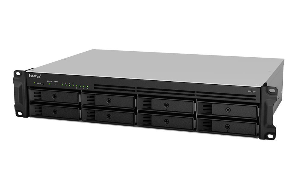 Synology RackStation RS1219+ hadir dengan form factor jenis 2U yang terdiri dari 8-bay untuk SATA HDD dan SSD 3,5 inci atau 2,5 inci. Otaknya menggunakan Intel Atom C2538 2,4GHz 64-bit serta RAM 2GB DDR3 yang bisa ditingkatkan hinga 16GB (2x 8GB).