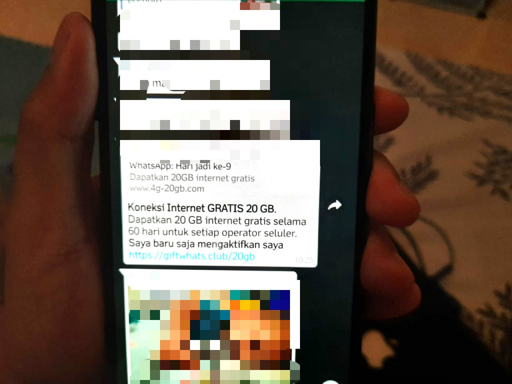 Kabar buruknya, ini jadi peluang bagi penjahat siber untuk melakukan penipuan berkedok bagi-bagi kuota internet gratis. Metodenya adalah mereka akan menyebar pesan berantai di WhatsApp dan lainnya berisi tautan situs yang harus diisi data pengguna.