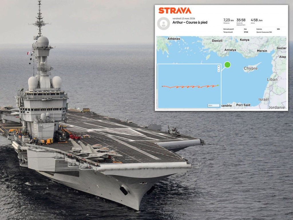 Berdasarkan laporan media Prancis, Euro News, seorang personel angkatan laut merekam aktivitas lari menggunakan Strava pada 13 Maret 2026.