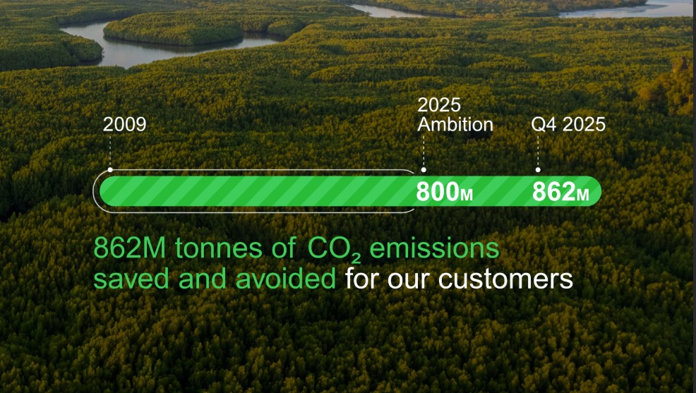 Dalam aksi iklim, Schneider Electric memainkan peran krusial dengan membantu pelanggan menghemat dan menghindari 862 juta ton emisi CO2 hingga akhir 2025, melampaui target awal sebesar 800 juta ton CO2. Selain itu, melalui inisiatif Zero Carbon Project, perusahaan berhasil memobilisasi 1.000 pemasok strategis teratas, yang berkontribusi pada penurunan 56% emisi CO2 operasional pemasok.