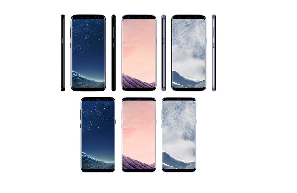 Samsung Galaxy S8 and S8 Plus (top to bottom) in black sky, orchid grey and arctic silver (left to right) pic.twitter.com/ISo7W10sYV