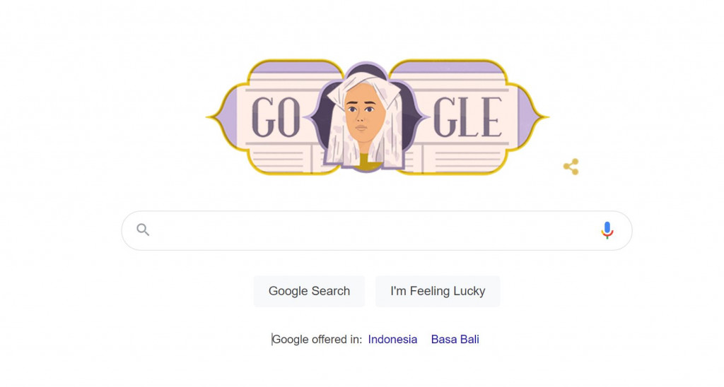 Google Doodle hari ini menampilkan sebuah wajah perempuan dengan penutup kepala khas dari Indonesia. Saat Anda mengarahkan pointer mouse ke bagian Google Doodle atau menekan bagian tersebut di layar smartphone maka Google akan menampilkan halaman baru berisi informasi dari sosok bernama Roehana Koeddoes.