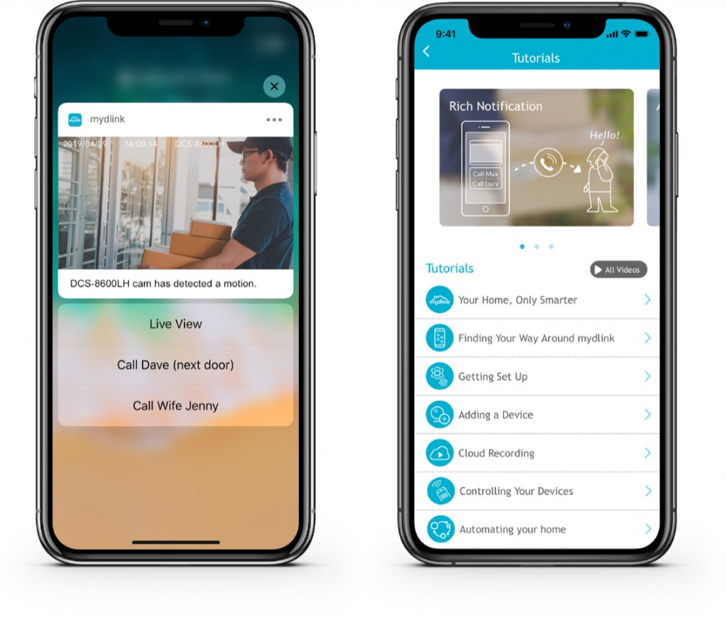 Misalnya, Anda menerima notifikasi Mydlink bahwa kamera pengawas di rumah mendeteksi ada orang di depan pintu. Rich Notification akan memberikan informasi lengkap berupa foto serta video live-view dari kamera pengawas.