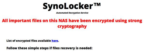 Sementara itu, kepada pengguna yang sudah terlanjur menjadi korban SynoLocker, Synology menganjurkan mereka untuk mematikan servernya guna mencegah terulangnya serangan dan menghubungi Synology untuk mengatasi masalah tersebut.