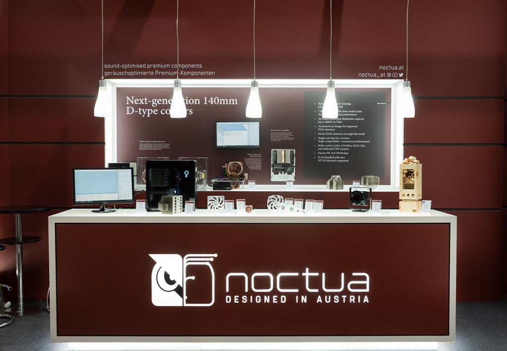 Di antaranya adalah generasi terbaru dari model dual tower 140mm, sistem pendingin berdesain fanless, dan edisi warna hitam dari Noctua NH-D15, NH-U12S, dan NH-L9i. Dipamerkan juga produk pemenang penghargaan European Hardware Association yaitu Noctua NF-A12x25.