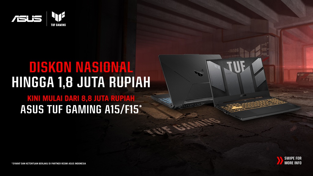 Asus menghadirkan promo menarik untuk dua model laptop gaming andalan yang populer di kalangan pelajar dan pekerja kantoran di Indonesia, yaitu TUF Gaming A15 dan TUF Gaming F15.