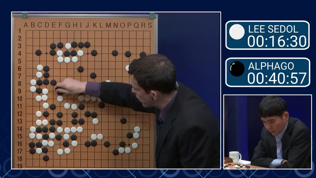 Saat ini, AlphaGo adalah program yang paling canggih. Ia memiliki sistem jaringan syaraf yang kompleks dan metode pembelajaran mesin. Tahun lalu, ia berhasil mengalahkan juara Go Eropa Fan Hui. Lee dan AlphaGo akan kembali bertanding sebanyak 4 kali.
