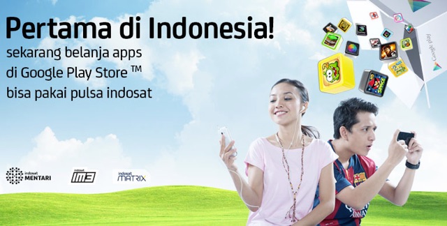 Google telah bekerja sama dengan salah satu perusahaan telekomunikasi terbesar di Indonesia, Indosat. Sesuai yang Anda pikirkan, pengguna jaringan IM3, Mentari, dan Matrix kini bisa membeli aplikasi di Google Play Store dengan pembayaran melalui pulsa. Setiap transaksi yang dilakukan melalui metode ini akan dikenakan biaya tambahan sebesar 10% dari harga aplikasi yang dibeli.