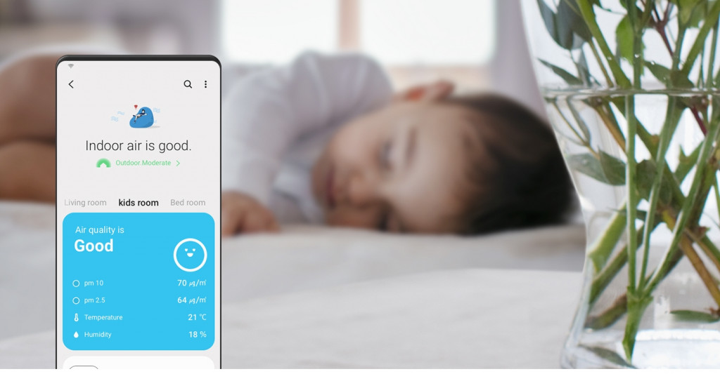 Namun dengan Samsung Galaxy S21 Series 5G, pengguna dapat mengetahui kualitas udara di rumah anda melalui menu ‘Indoor Air Quality’. Dengan fitur tersebut, pengguna dapat mengetahui level debu di rumah, dan menyalakan air purifier untuk menjaga kondisi udara di rumah anda tetap baik, bahkan ketika bepergian.
