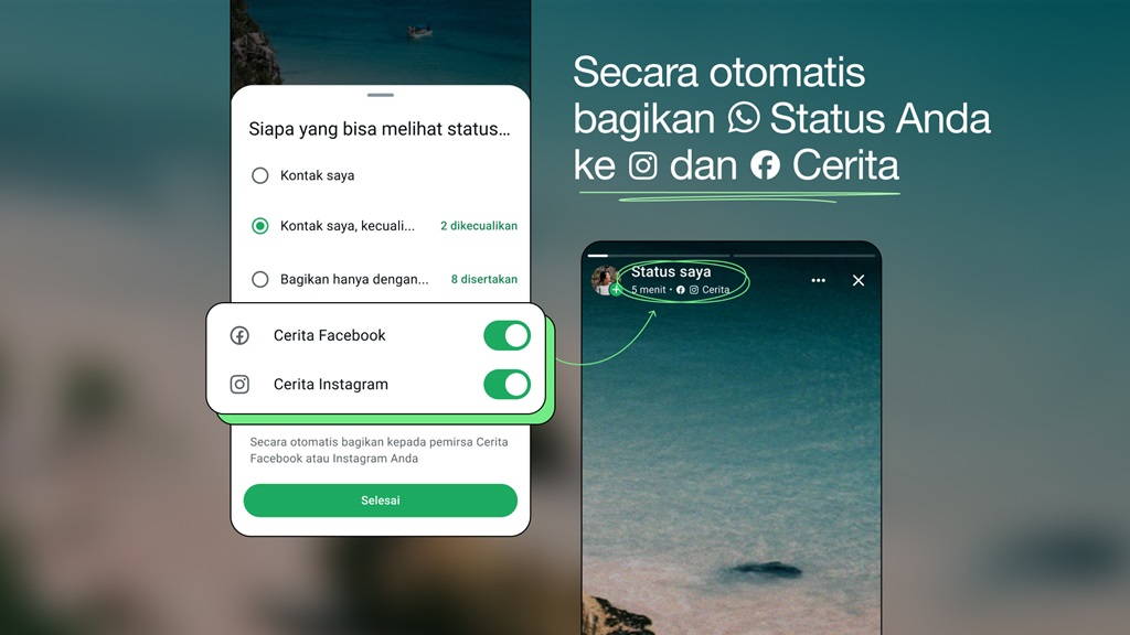 “Kami menghadirkan fitur untuk menambahkan WhatsApp ke Pusat Akun, memudahkan pengguna untuk membagikan Status WhatsApp ke berbagai platform di Meta. Login ke berbagai aplikasi Meta pun bisa dilakukan dengan akun yang sama (login tunggal),” jelas Meta.