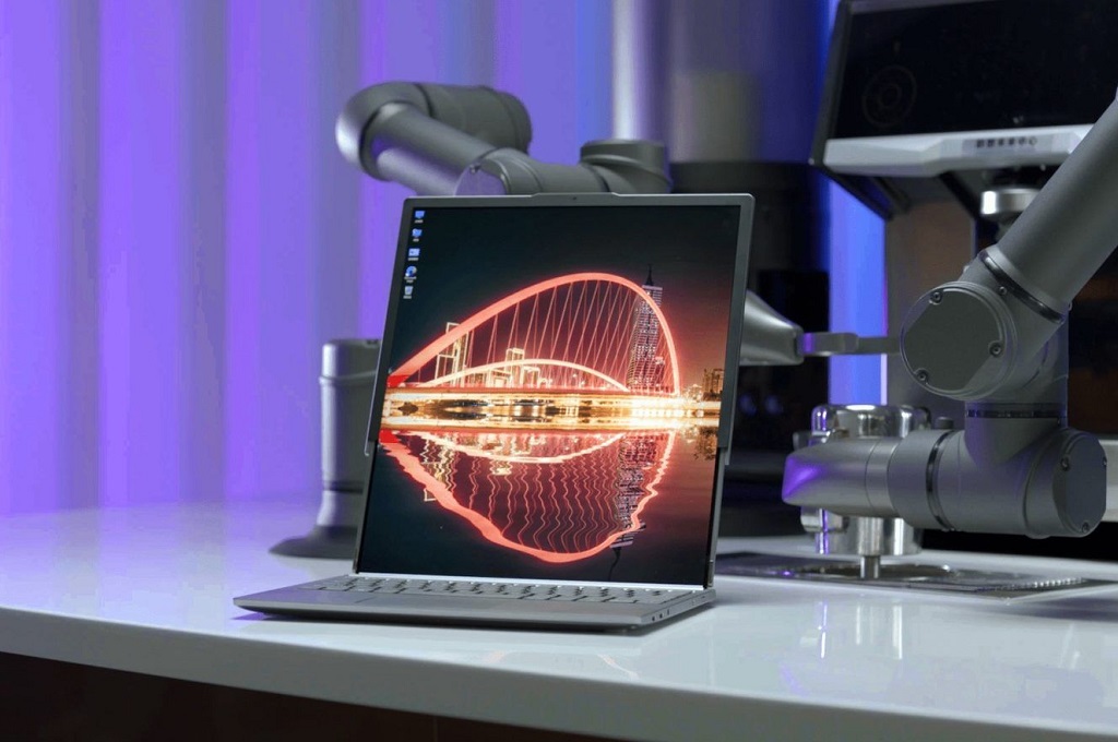 Lenovo juga memamerkan laptop dengan layar berkemampuan digulung, yang ditampilkan di awal demonstrasi layaknya layar landscape umum dan kemudian menggulung menjadi bentuk kotak, menjadikannya lebih sesuai untuk dokumen atau video berorientasi vertikal seperti TikTok.
